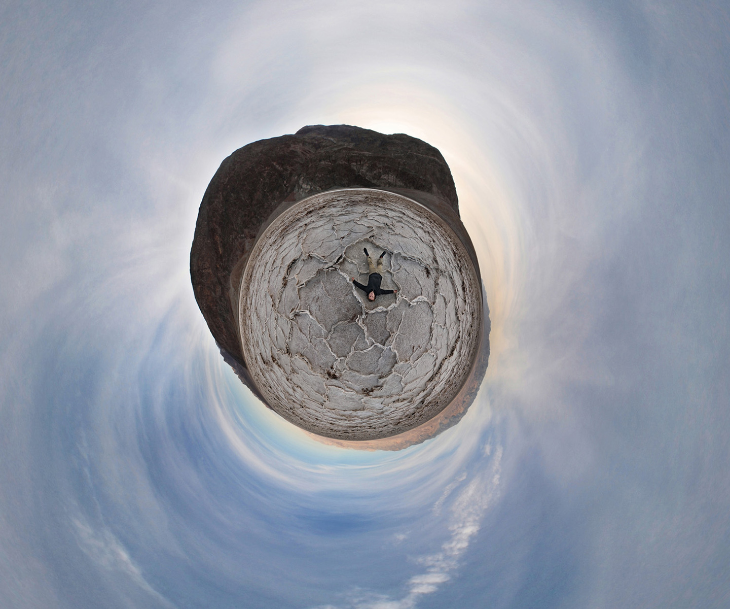 Autoportrait sur le désert de sel de Bad Water dans la vallée de la mort. Variations #4
