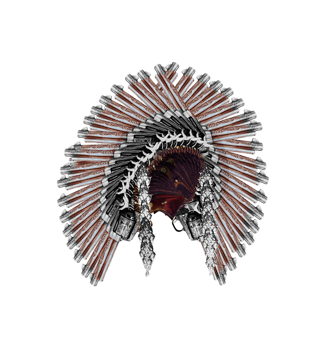 Le Colt est le pistolet emblématique de la Conquête de l’ouest. Depuis plusieurs années, Lisa Sartorio a mis de côté son appareil photographique. Devant le constat de la surabondance des images, elle construit des processus de recyclage. Son travail interroge le paradoxe de l’hyper-reproductibilité des images qui fait oublier le contenu et le sens de ce que l’on voit. La série L’écrit de l’Histoire est réalisée à partir de photographies d’armes de guerres récupérées sur Internet, ayant joué un rôle majeur dans les conflits mondiaux. Contrairement aux autes oeuvres de la série dont la multiplication s’oriente vers des formes paysagères, ici COLT reste concentrée sur l’Histoire.